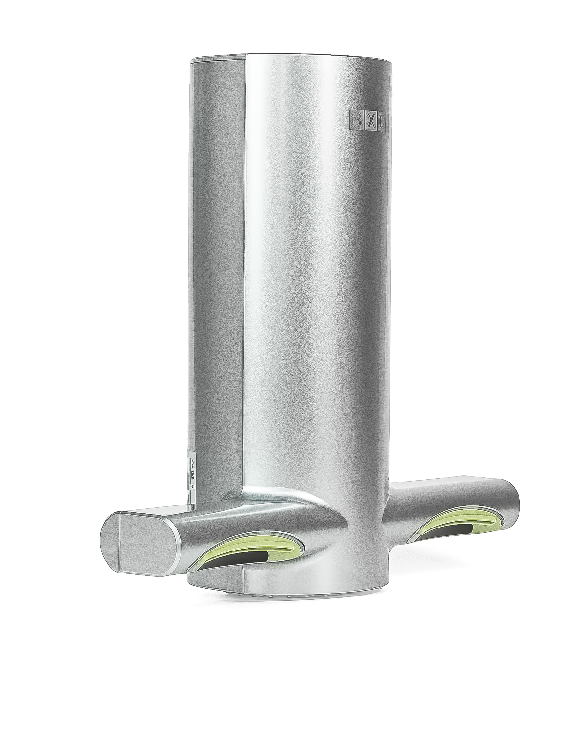 Дизайн сушилки выполнен в элегантном стиле. Воздуховодные отверстия размещены по корпусу с левой и с правой стороны для каждой руки раздельно! В состав воздуховодных отверстий дополнительно включены антибактериальные и антигрибковые компоненты, предотвращающие возникновение и размножение бактерий, грибков и плесени в воздуховодном тракте. Данная зона выделена специальным желтым цветом.